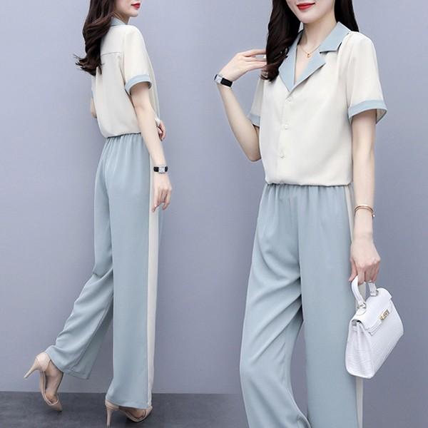 セットアップ レディース 夏 カジュアル 40代 代 おしゃれ 上下セット ブラウス シャツ 半袖 ガウチョパンツ 大きいサイズ ゆったり 韓国風 着痩せ 通勤 新品 Y アユストア 通販 Yahoo ショッピング